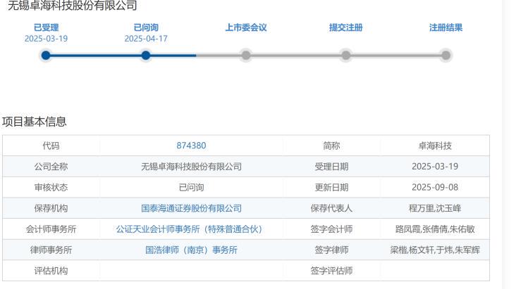 卓海科技曾于2022年6月14日闯关创业板,并计划募资5.47亿元。2023年1月20日,因存在未能结合行业情况充分说明其“三创四新”特征、不符合创业板定位要求、对是否存在对持续经营有重大不利影响的事项解释不充分、业绩波动较大等问题,该公司告别了首次IPO之旅。